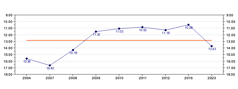 | Antall deltagelser | 9 (i perioden 2004 - 2023) |