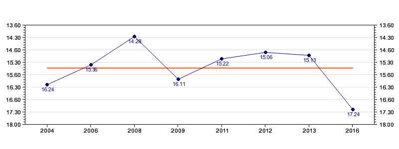 Antall deltagelser8 (i perioden 2004 - 2016)