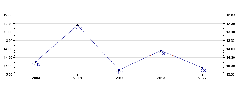 | Antall deltagelser | 5 (i perioden 2004 - 2022) |