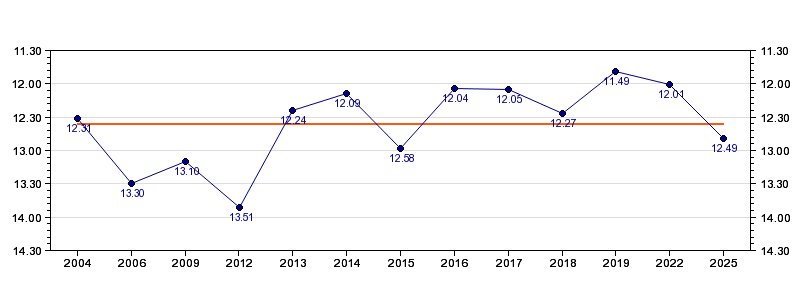 Antall deltagelser13 (i perioden 2004 - 2025)
