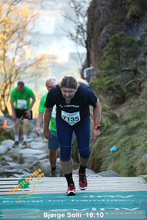 Da Thorbjørn Ludvigsen satte rekord på 7.54 i 2016 hadde han serien 95-99-95-115 og en gjennomsnittlig vertikal hastighet på 2286 meter/time. Kristin Størmer Steira hadde serien 107-96-95-107 da hun satte damerekord på 9:35 i 2013 med en gjennomsnittlig vertikal hastighet på 1884 meter/time. Til sammenligning hadde verdensrekordløpene på en vertikal kilometer (per 1/8/2014) hastighet på henholdsvis 1967 meter/time og 1630 meter/time - men da ble det altså løpt mer enn 3 ganger så langt.
