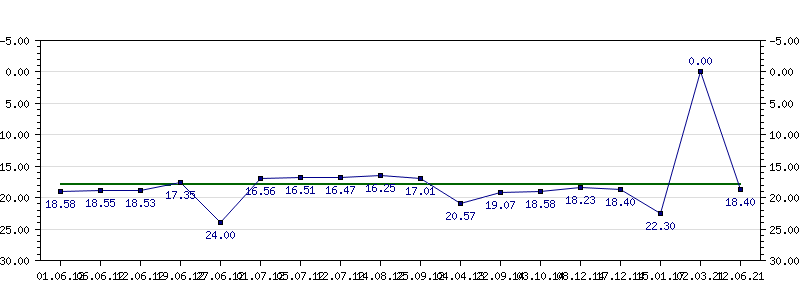 | 01.06.2012 | 18.58 | 06.06.2012 | 18.55 | 12.06.2012 | 18.53 | 19.06.2012 | 17.35 | 27.06.2012 | 24.00 | 01.07.2012 | 16.56 |