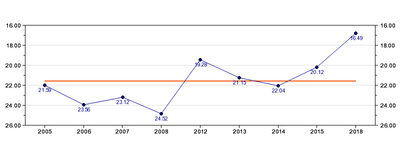 Antall deltagelser9 (i perioden 2005 - 2018)