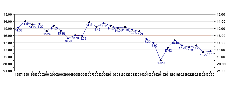 Antall deltagelser28 (i perioden 1997 - 2025)