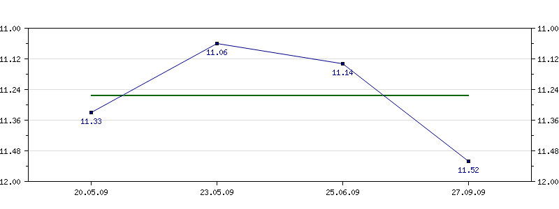 | 20.05.2009 | 11.33 | 23.05.2009 | 11.06 | 25.06.2009 | 11.14 | 27.09.2009 | 11.52 |