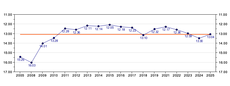 Antall deltagelser18 (i perioden 2005 - 2025)