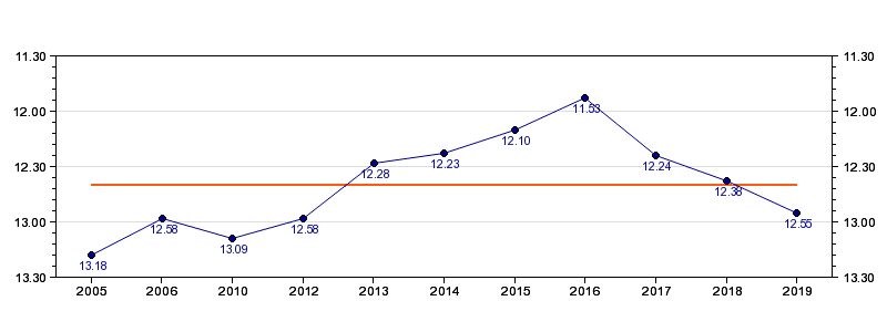 | Forrige tid | 12.55 (2019) |
