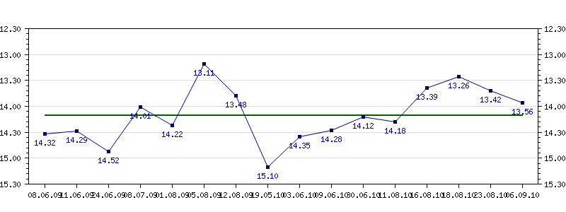 | 16.08.2010 | 13.39 | 18.08.2010 | 13.26 | 23.08.2010 | 13.42 | 06.09.2010 | 13.56 |