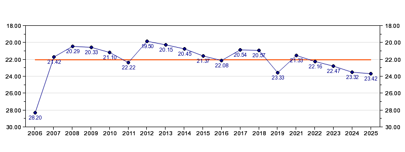 | Antall deltagelser | 19 (i perioden 2006 - 2025) |