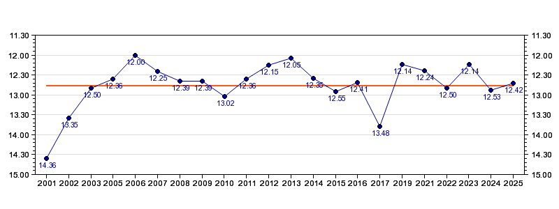 | 2025 | Kalkulator | 12:42 (1423 m/h) | 02:18 (1403 m/h, 98 %) | 06:13 (03:55, 1404 m/h, 98 %) | 11:07 (04:54, 1399 m/h, 98 %) | 12:42 (01:35, 1576 m/h, 110 %) |