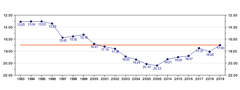 | Antall deltagelser | 20 (i perioden 1993 - 2019) |
