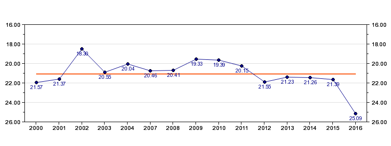 2016Kalkulator25:09 (719 m/h)04:09 (777 m/h, 108 %)11:59 (07:50, 702 m/h, 97 %)22:01 (10:02, 683 m/h, 94 %)25:09 (03:08, 796 m/h, 110 %)