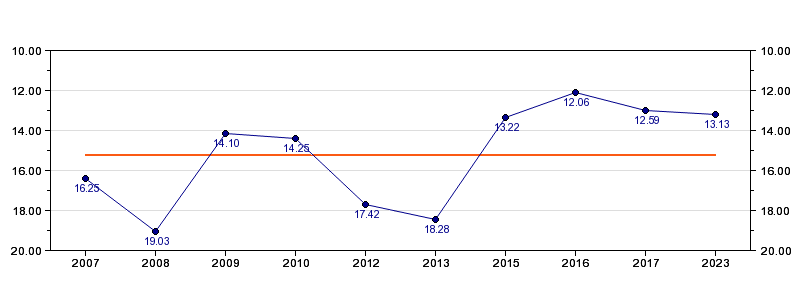 Antall deltagelser10 (i perioden 2007 - 2023)