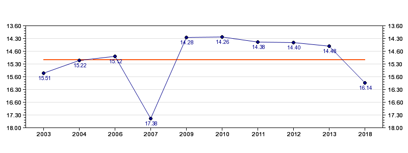 Antall deltagelser10 (i perioden 2003 - 2018)