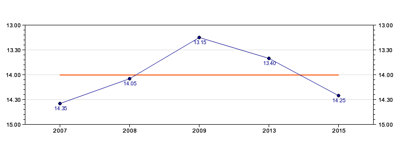 | Forrige tid | 14.25 (2015) |