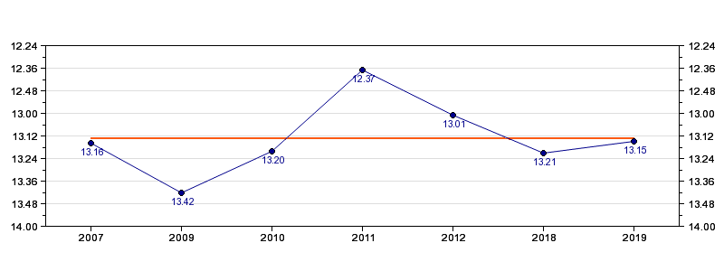 | Forrige tid | 13.15 (2019) |