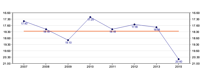 | Forrige tid | 20.40 (2015) |