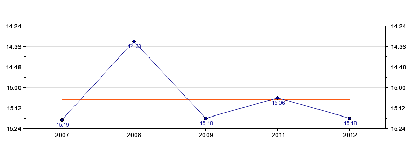 | Forrige tid | 15.18 (2012) |