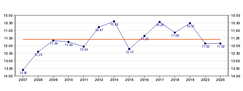 | Antall deltagelser | 14 (i perioden 2007 - 2025) |
