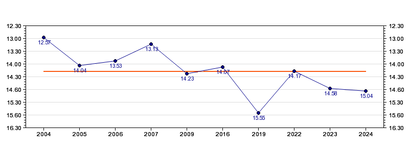 | Antall deltagelser | 10 (i perioden 2004 - 2024) |