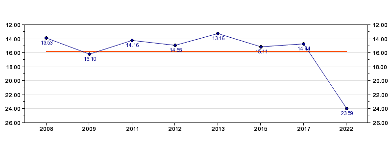 Antall deltagelser8 (i perioden 2008 - 2022)