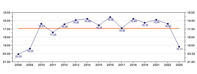 2009Kalkulator19:25 (931 m/h)02:56 (1100 m/h, 118 %)09:15 (06:19, 871 m/h, 93 %)17:02 (07:47, 881 m/h, 94 %)19:25 (02:23, 1047 m/h, 112 %)