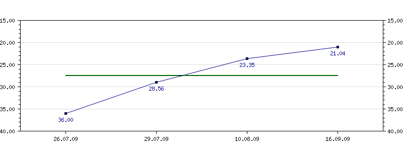 | 26.07.2009 | 36.00 | 29.07.2009 | 28.56 | 10.08.2009 | 23.35 | 16.09.2009 | 21.04 |