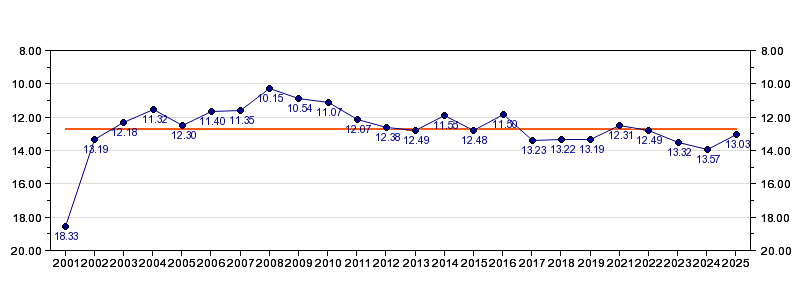 Antall deltagelser24 (i perioden 2001 - 2025)