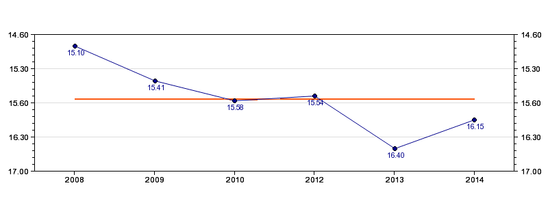 | Forrige tid | 16.15 (2014) |