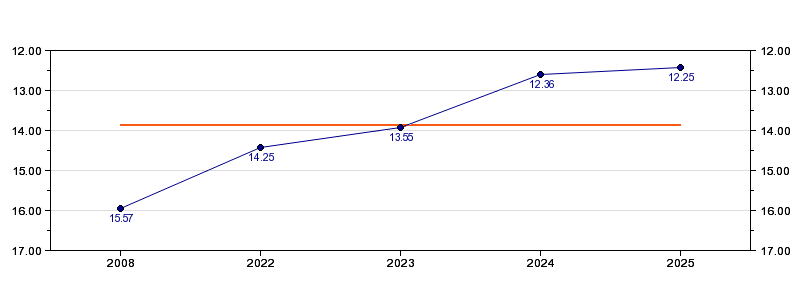 | Forrige tid | 12.25 (2025) |