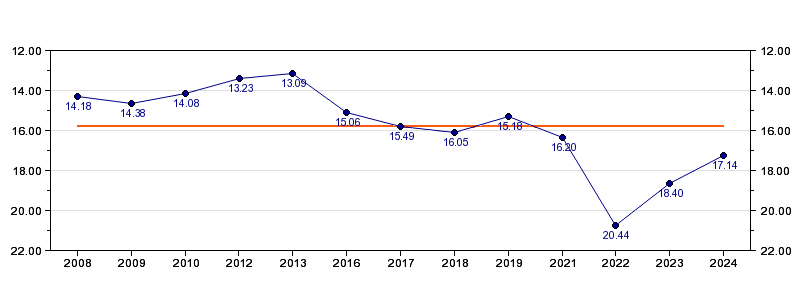 Antall deltagelser13 (i perioden 2008 - 2024)