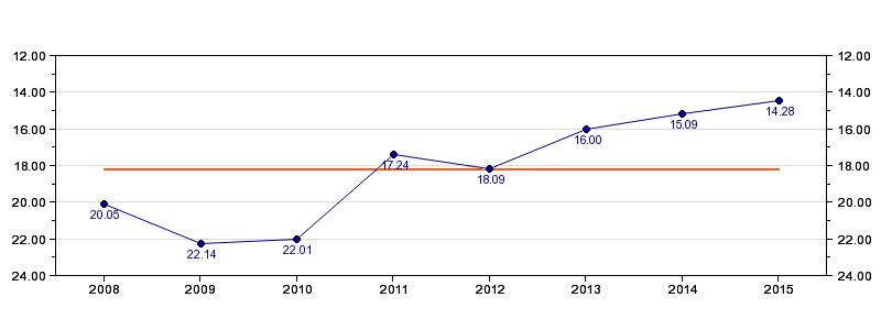 | Forrige tid | 14.28 (2015) |