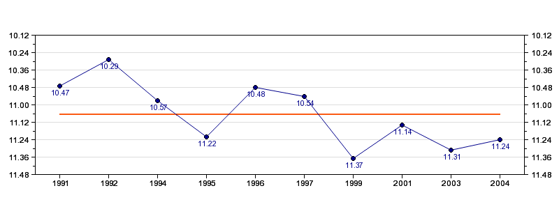Antall deltagelser10 (i perioden 1991 - 2004)