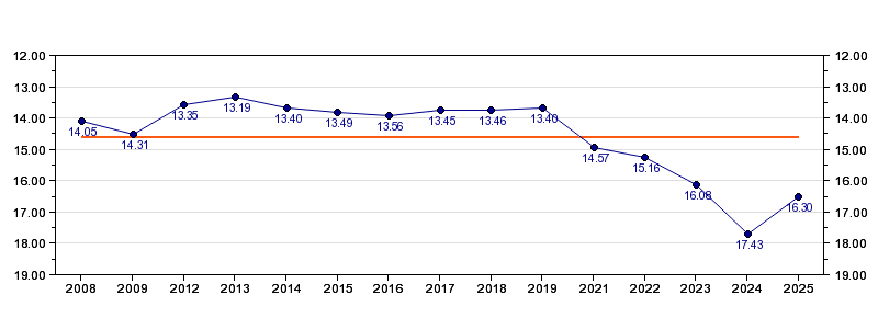 Antall deltagelser15 (i perioden 2008 - 2025)