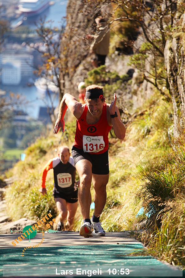 Da Thorbjørn Ludvigsen satte rekord på 7.54 i 2016 hadde han serien 95-99-95-115 og en gjennomsnittlig vertikal hastighet på 2286 meter/time. Kristin Størmer Steira hadde serien 107-96-95-107 da hun satte damerekord på 9:35 i 2013 med en gjennomsnittlig vertikal hastighet på 1884 meter/time. Til sammenligning hadde verdensrekordløpene på en vertikal kilometer (per 1/8/2014) hastighet på henholdsvis 1967 meter/time og 1630 meter/time - men da ble det altså løpt mer enn 3 ganger så langt.