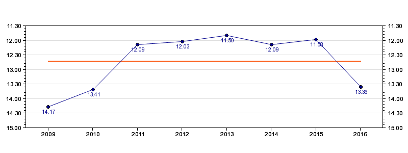 2016Kalkulator13:36 (1329 m/h)02:24 (1345 m/h, 101 %)06:35 (04:11, 1315 m/h, 98 %)12:00 (05:25, 1266 m/h, 95 %)13:36 (01:36, 1560 m/h, 117 %)