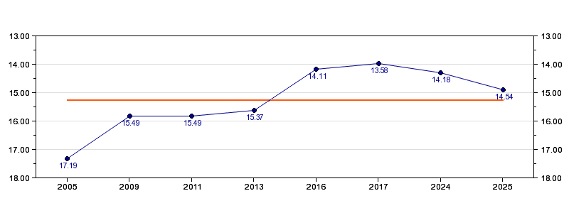 | Forrige tid | 14.54 (2025) |