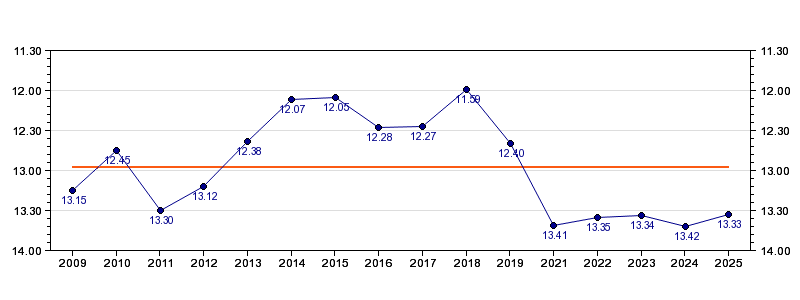 Antall deltagelser16 (i perioden 2009 - 2025)