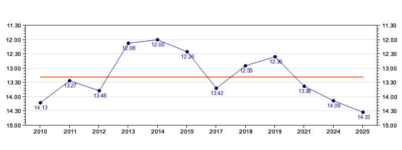 Antall deltagelser12 (i perioden 2010 - 2025)