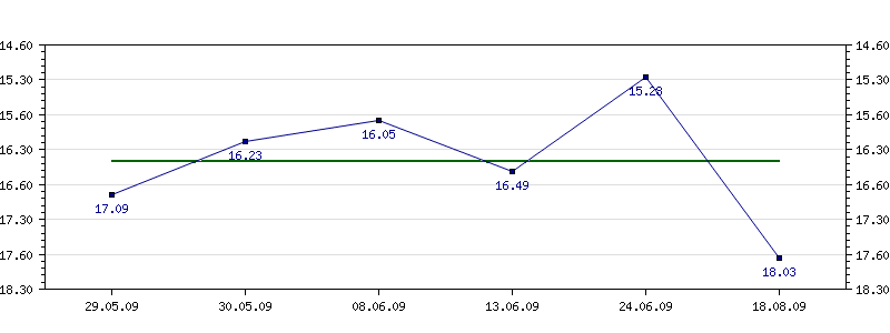 | 29.05.2009 | 17.09 | 30.05.2009 | 16.23 | 08.06.2009 | 16.05 | 13.06.2009 | 16.49 | 24.06.2009 | 15.28 | 18.08.2009 | 18.03 |