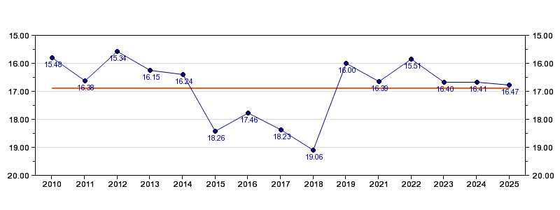 Antall deltagelser15 (i perioden 2010 - 2025)