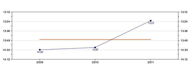 | Forrige tid | 13.23 (2011) |