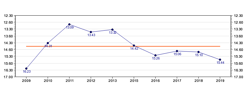 | Forrige tid | 15.44 (2019) |