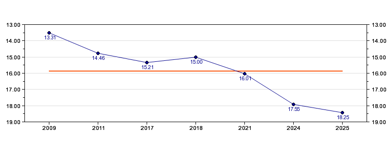 Antall deltagelser7 (i perioden 2009 - 2025)