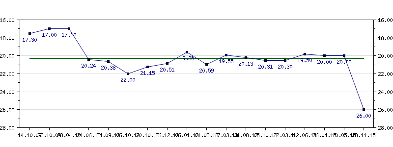 | 05.10.2013 | 20.31 | 22.03.2014 | 20.30 | 12.06.2014 | 19.50 | 26.04.2015 | 20.00 | 10.05.2015 | 20.00 | 28.11.2015 | 26.00 |