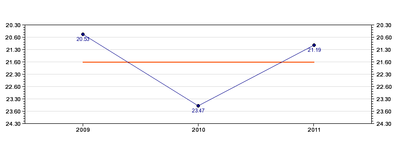 | Forrige tid | 21.19 (2011) |