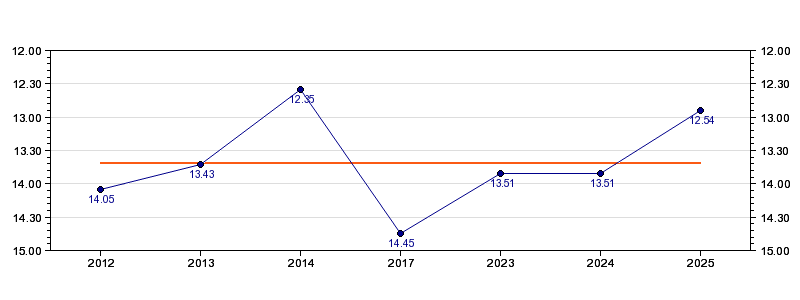 Antall deltagelser7 (i perioden 2012 - 2025)