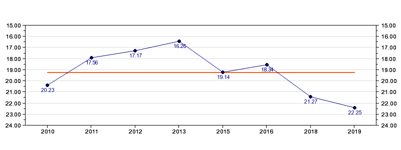 | Forrige tid | 22.25 (2019) |