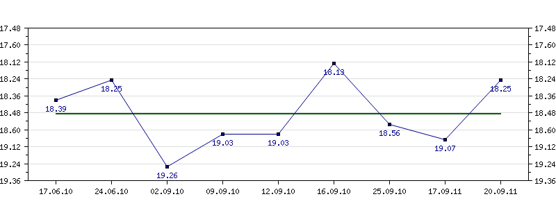 | 25.09.2010 | 18.56 | 17.09.2011 | 19.07 | 20.09.2011 | 18.25 |