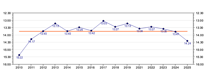 2025Kalkulator14:24 (1255 m/h)02:21 (1373 m/h, 109 %)06:41 (04:20, 1269 m/h, 101 %)12:26 (05:45, 1192 m/h, 94 %)14:24 (01:58, 1269 m/h, 101 %)